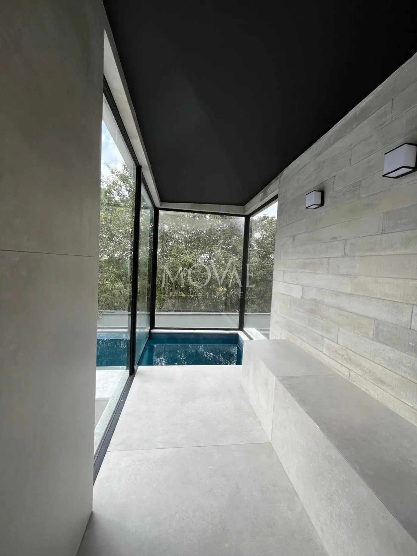 Persianas automatizadas nas janelas.