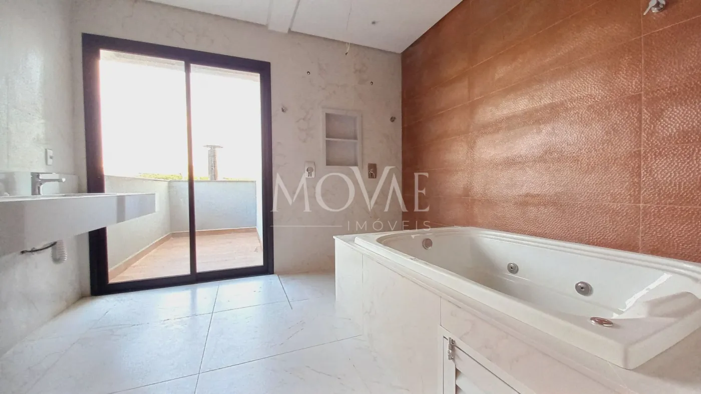 3 suítes, sendo uma master com hidromassagem e closet. Esquadrias em alumínio com venezianas elétricas em todas as suítes