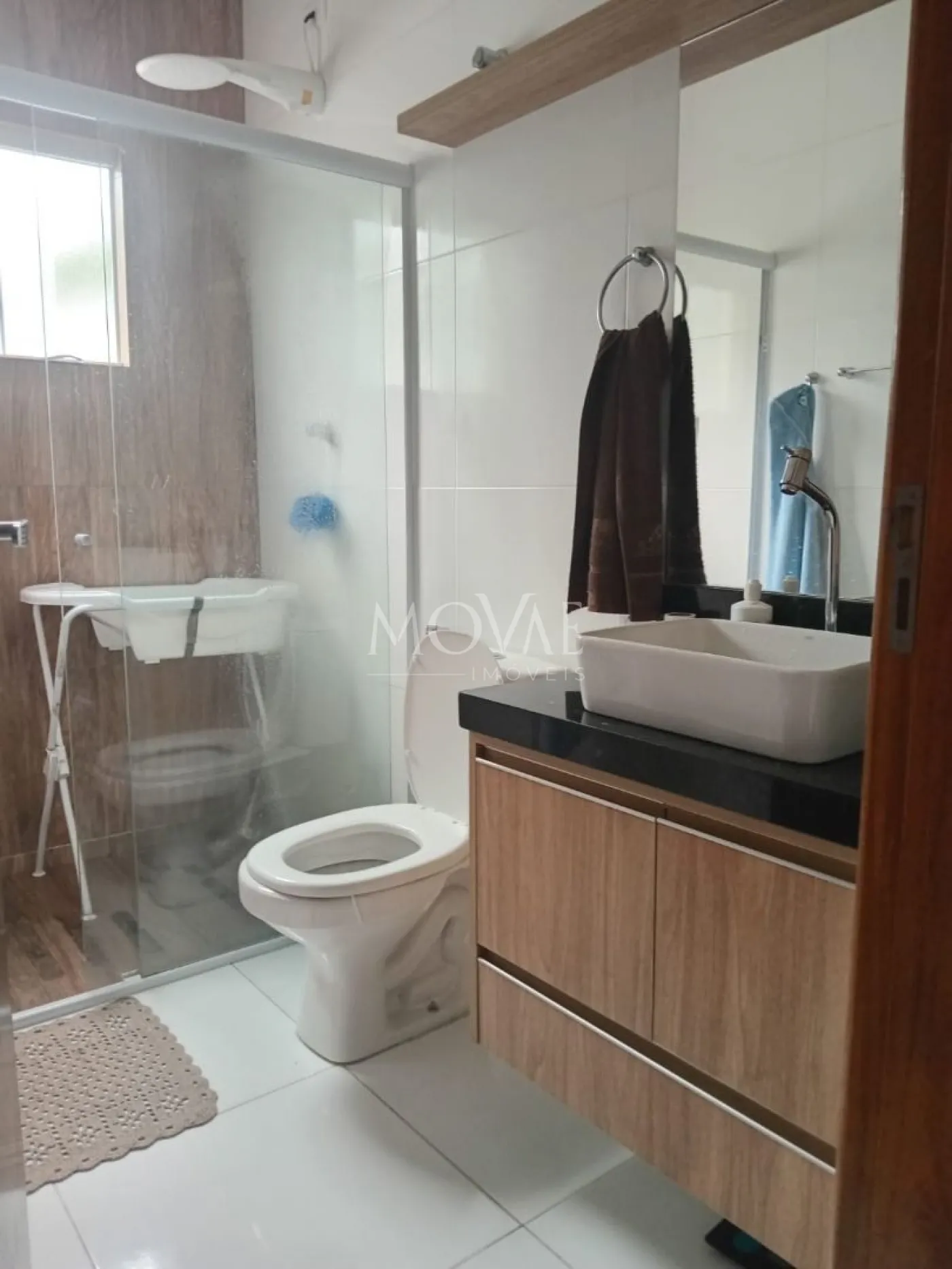 1 banheiro social moderno, com acabamentos de qualidade.