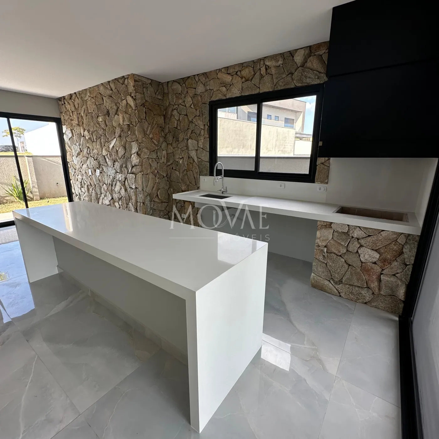 Bancadas e escadas em quartzo branco