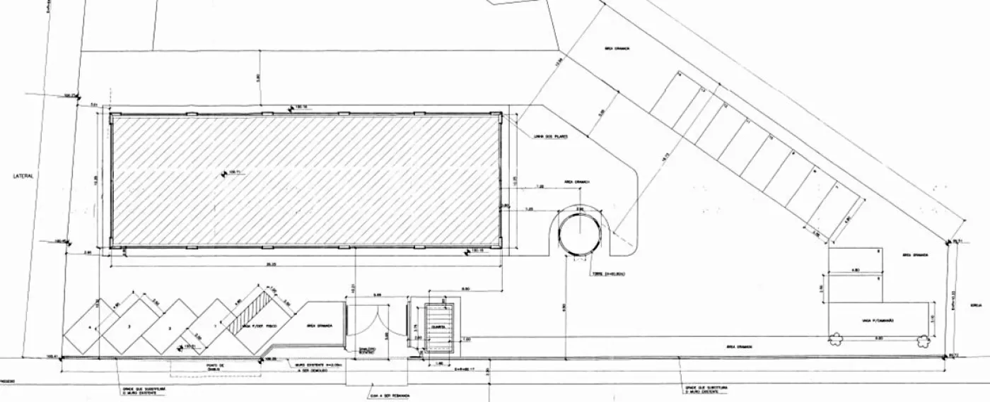 Com dois pavimentos, o prédio oferece 14 vagas internas para automóveis, 1 vaga para caminhão e guarita, atendendo plenamente às necessidades operacionais e de segurança.