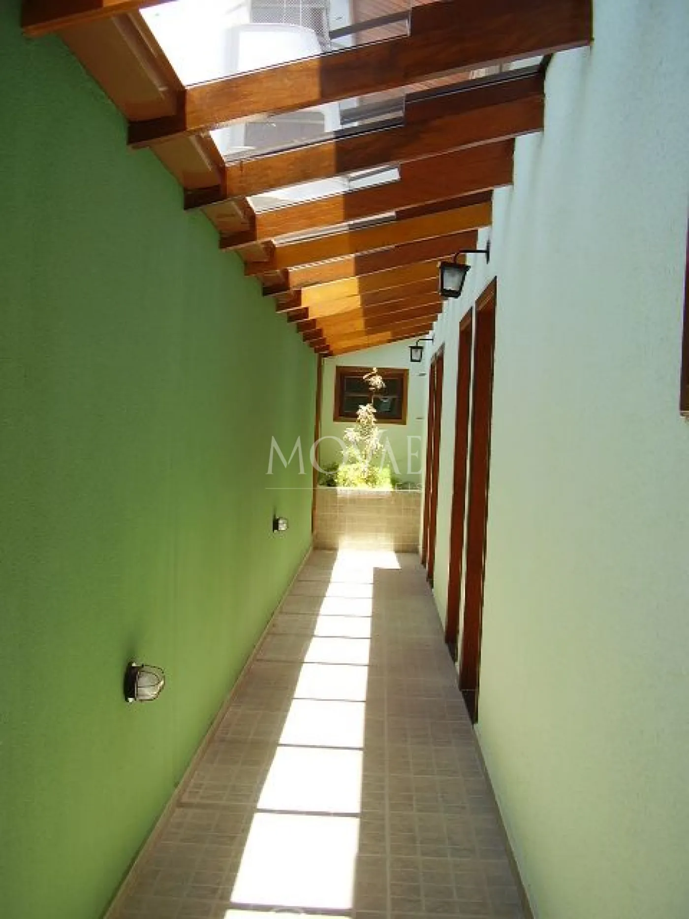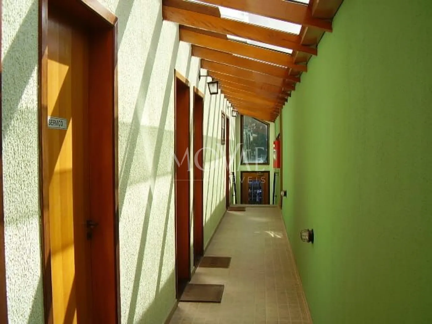 Corredores internos, nos dois pisos, são cobertos na sua totalidade, por vidros temperados
