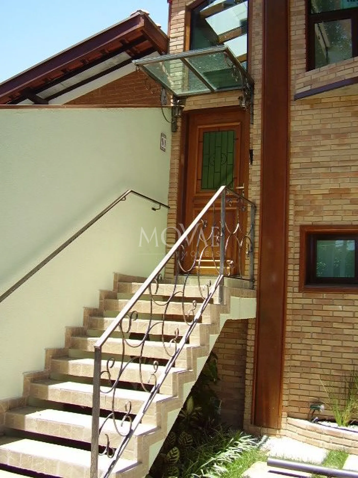 Sobrado charmoso, com fachada de tijolinho à vista e com design diferenciado.