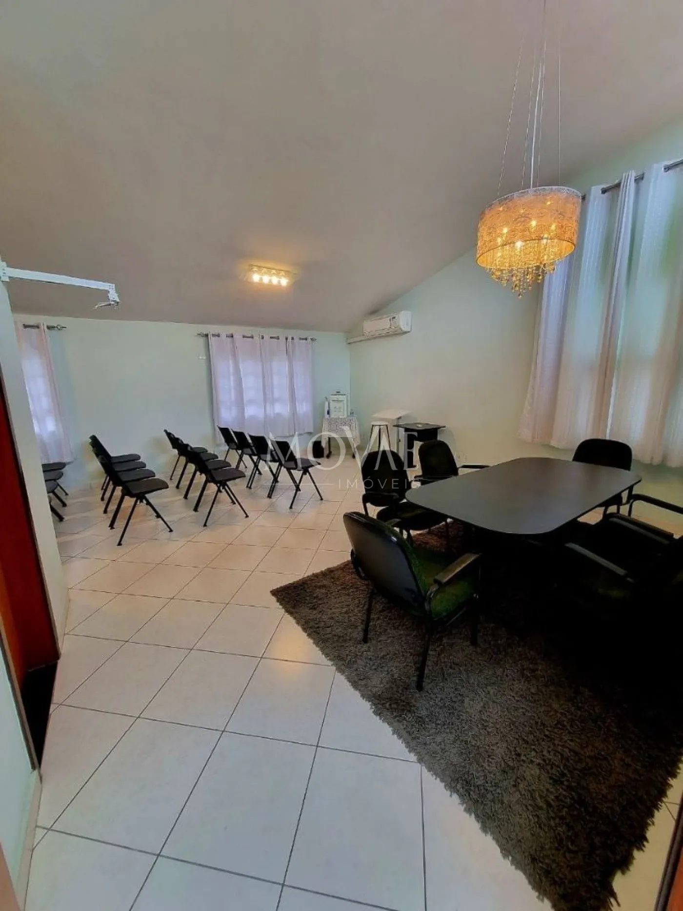 Todas as salas com pé direito duplo, janelas, muito bem iluminadas e com iluminação natural, bem ventiladas.